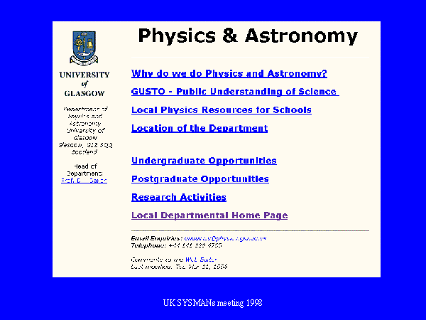 This shows the normal Welcome page for the Departments web server.